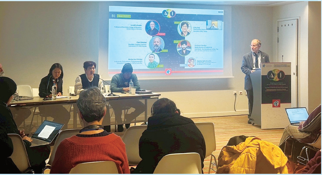 EI「全球教育與AI大會」(Global Conference on Artificial Intelligence)是國際教育工會界首次針對AI議題進行深入討論的會議。EI第10屆世界大會決議「AI必須用以支持教師的教學專業、公平優質的教育、學術自由,以發展公正永續的社會」,為討論立下方向,而EI重量級的研究報告「教育運用科技:教育工會在形塑教育未來的角色」(2021)、「教育中的AI不可預期的後果」(2023),是對話的基礎起點。